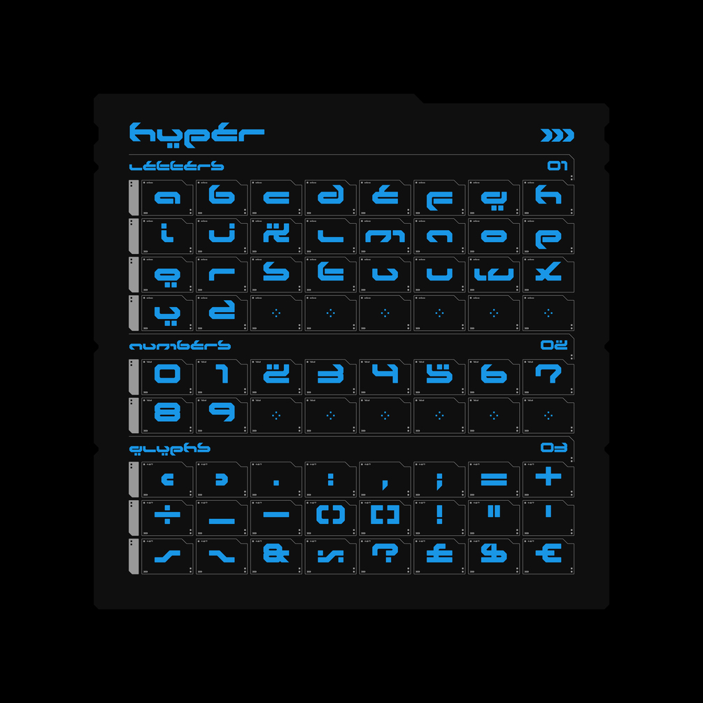 Discover Hyper, the futuristic font inspired by WipEout. With its retro-futuristic style and Y2K vibes, Hyper brings a dynamic and captivating energy to your designs. Perfect for posters, logos, and digital artworks, this font will elevate your creations with its bold and futuristic aesthetic. Unleash the power of Hyper and embrace the future.